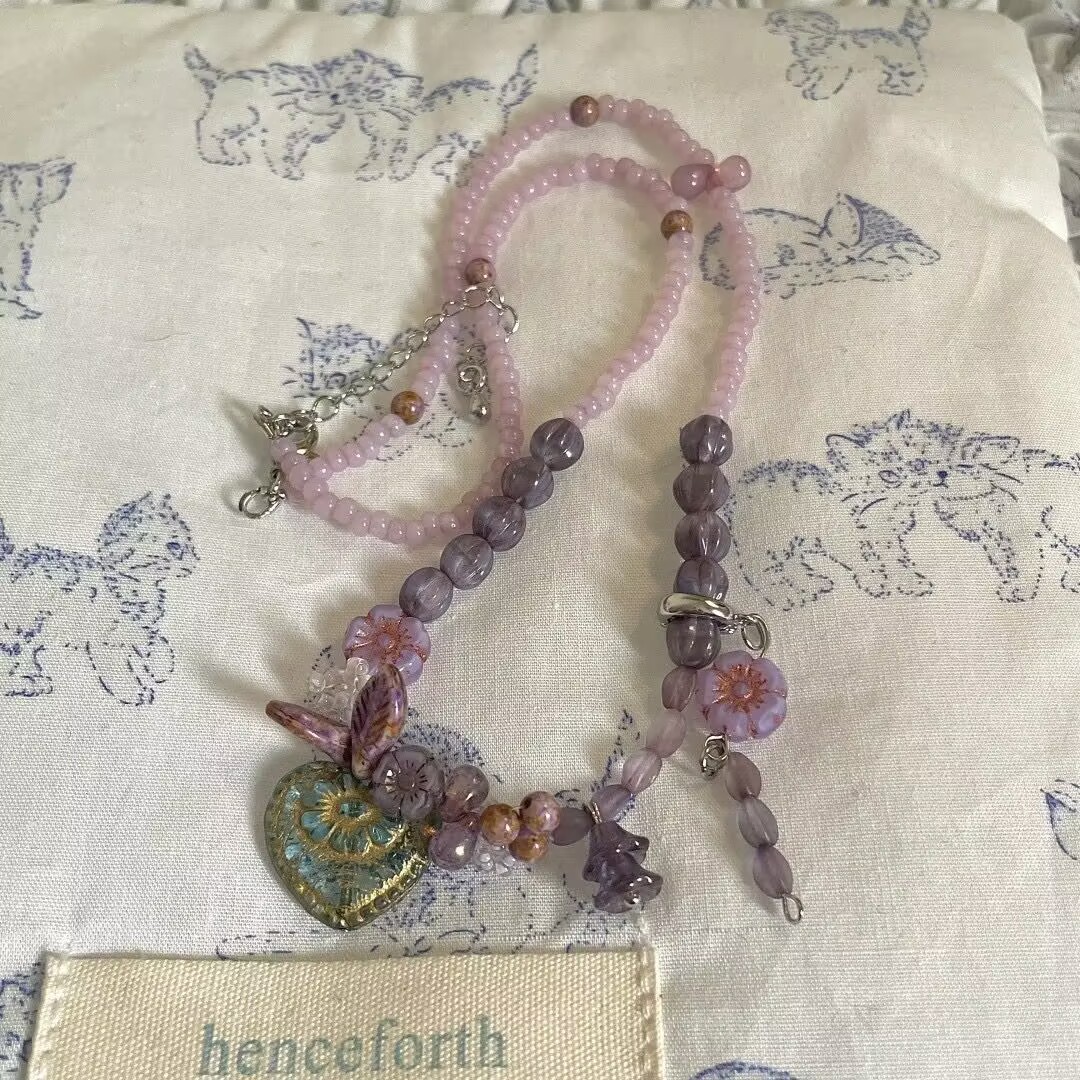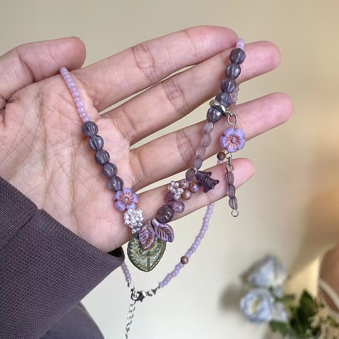 "Mulberry Wine" Vintage style purple handmade beaded pendant necklace