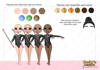three different skin tones, three eye colours and 6 hair colours for women