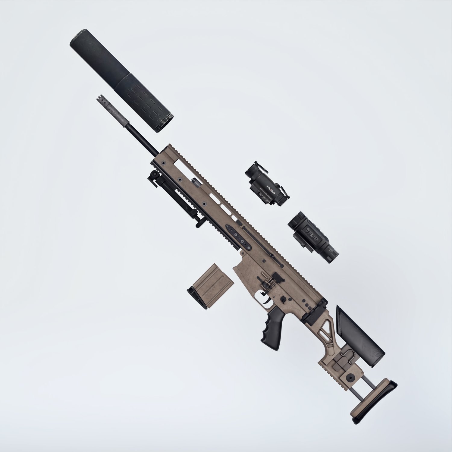 One of the coolest rifles that were never adopted by military, but come on, it looks great. This one is the Designated Marksman Rifle variant. Converted and rigged for use with DAZ. Trigger, safety, bolt, stock, etc also rigged for more realistic pictures. Includes 2 kinds of scopes, a silencer and a tripod for various porpoises and pictures.