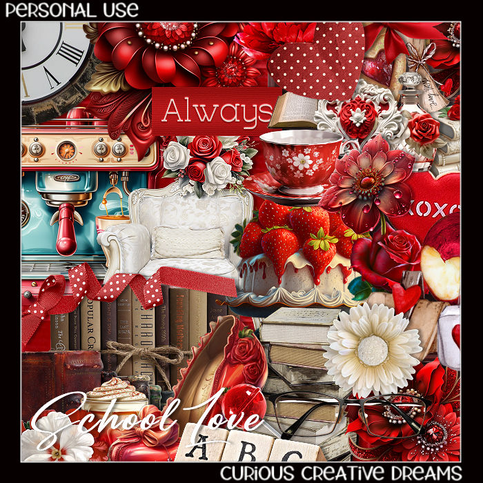 School Love Comes with 106 Elements , 16 Frames , 20 Papers , AI Included In this Kit , Personal Use Only . This Tube is NOT Included in the kit