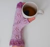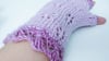 The mitts are knitted with two different yarn weights, thinner yarn for the lace at the finger tips and cuff, heavier yarn for the body.
