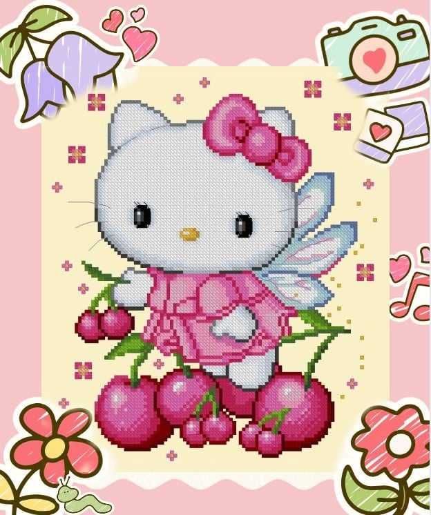 Cute Kitty Cherries -Cross Stitch PDF Downloadable Pattern