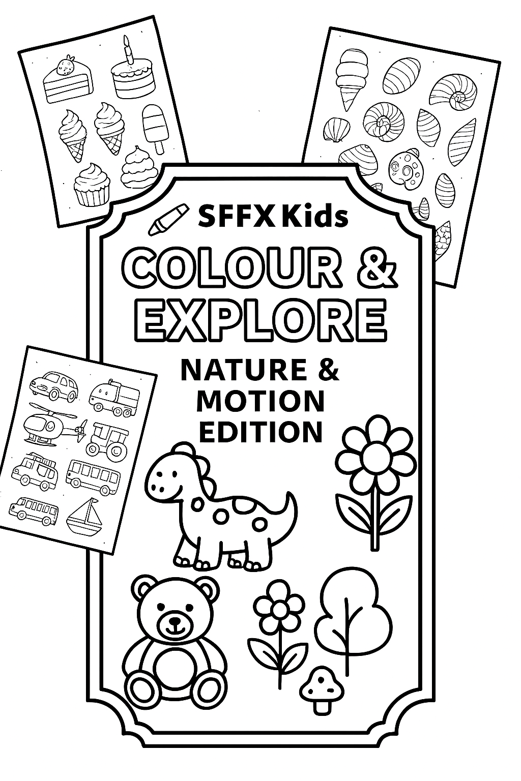 Dive into a world of wonder with Colour & Explore β Nature & Motion Edition, the second release in the SFFX Kids colouring series. This 15-page A4 printable book is packed with bold, child-friendly line art designed to spark creativity and curiosity in young minds.