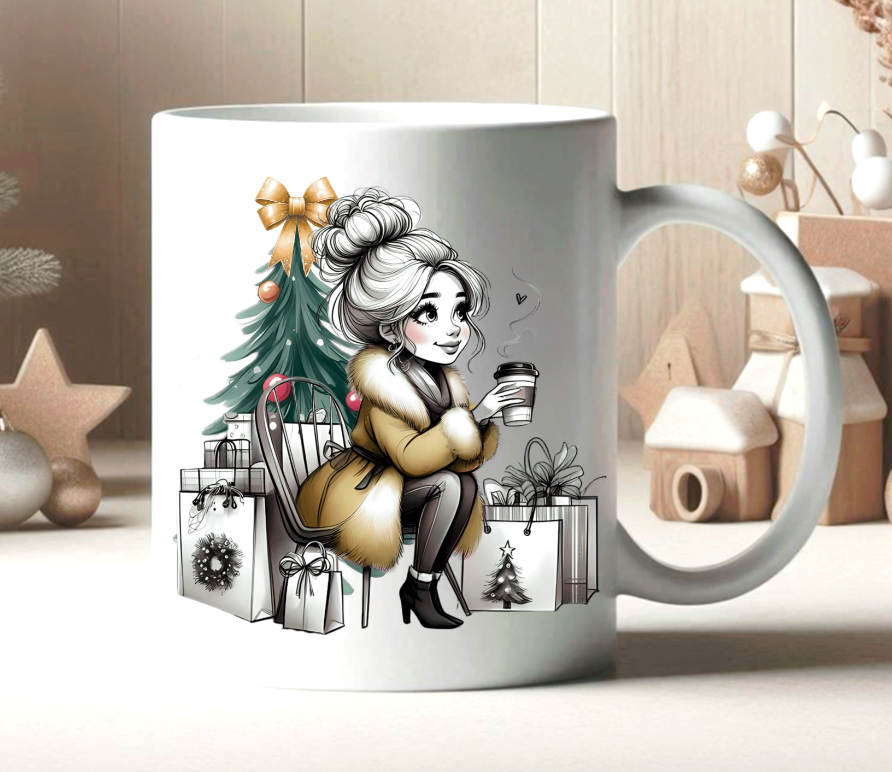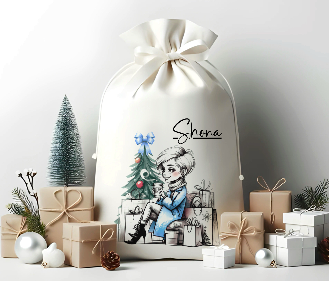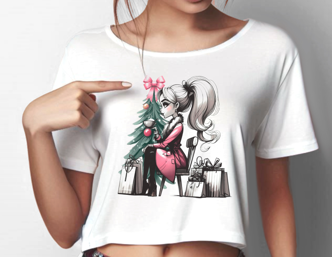 Christmas girl, 24 PNGs, 8 girls, 3 colour options for coat and Christmas tree; pink, blue, gold. Sublimation, print, DTF etc Christmas PNG. Instant Download.