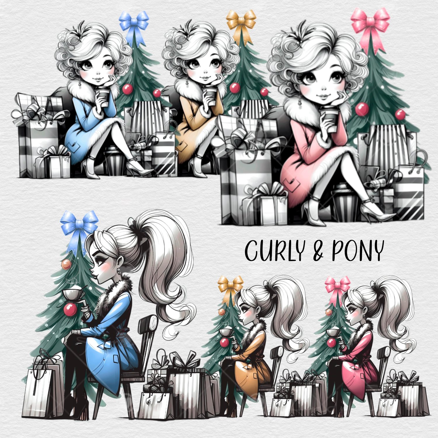Christmas girl, 24 PNGs, 8 girls, 3 colour options for coat and Christmas tree; pink, blue, gold
