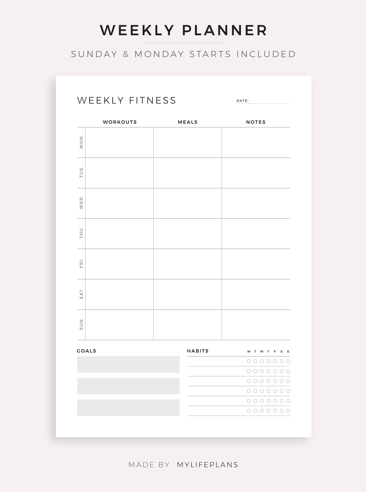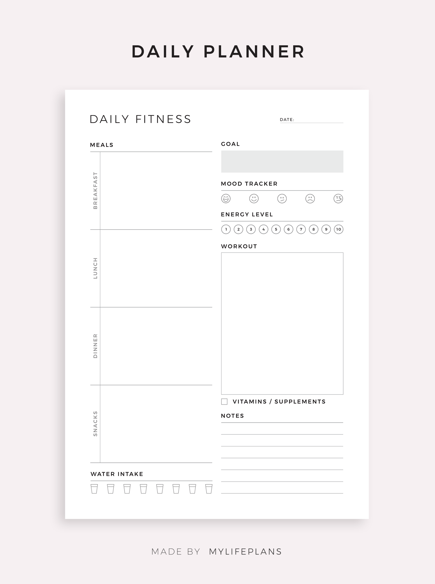 This is a printable fitness planner set — just download, print, and start using it right away.