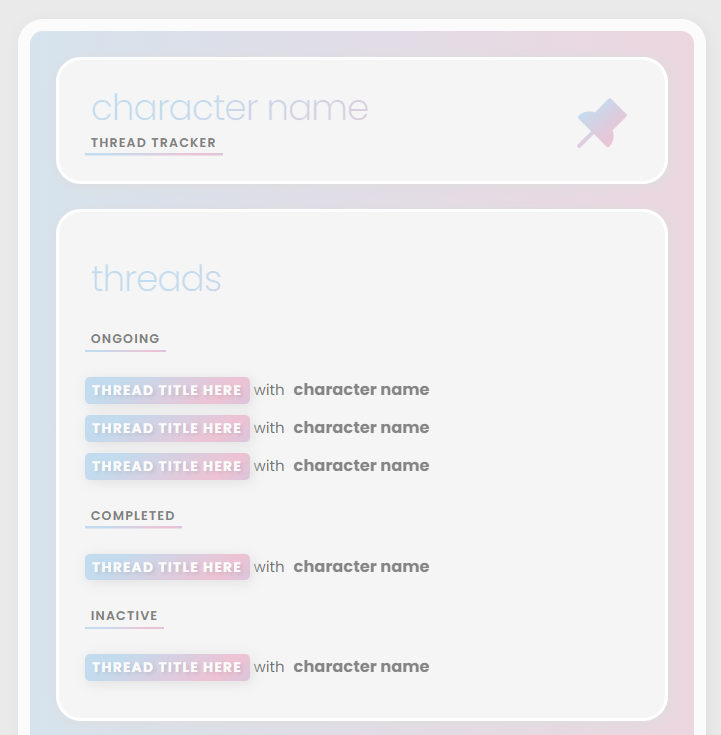 - Includes a large image template, moodboard template, general purpose template, quote template, playlist template and a thread tracker template.