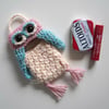 Pattern info page: https://www.sweetsofties.com/2024/02/mini-magic-owl-bag.html