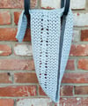 The Dreamtime Spring Scarf is a perfectly symmetrical lacy scarf. It features basic openwork as a background, and a center column of shell-style stitches running down the center of the scarf. The scarf is worked so that both halves are the same, with the stitches heading in the same direction for both halves.Copyright