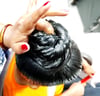 Oiling Squeezing Pouring Oil in a bun and Playing with bun/ponytail