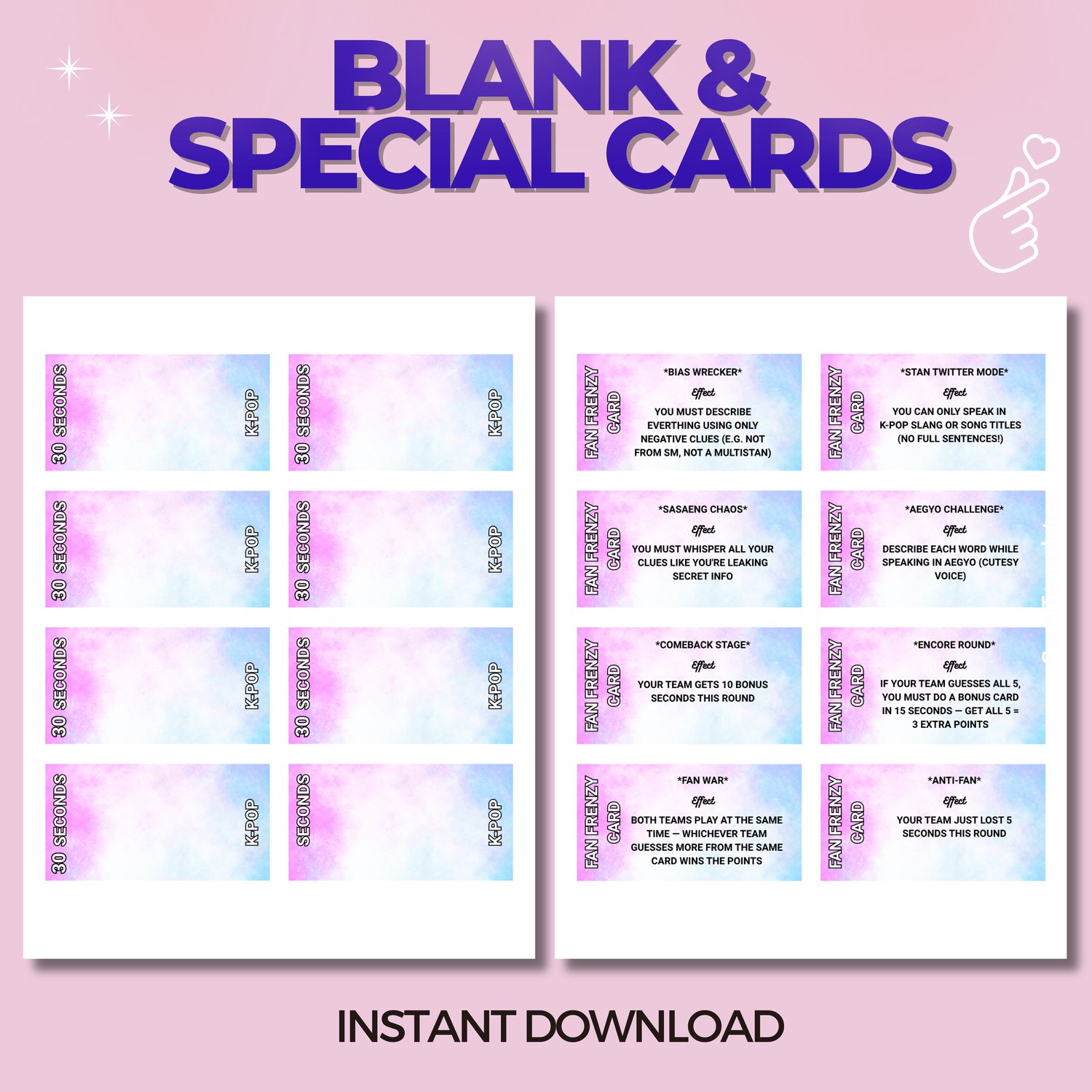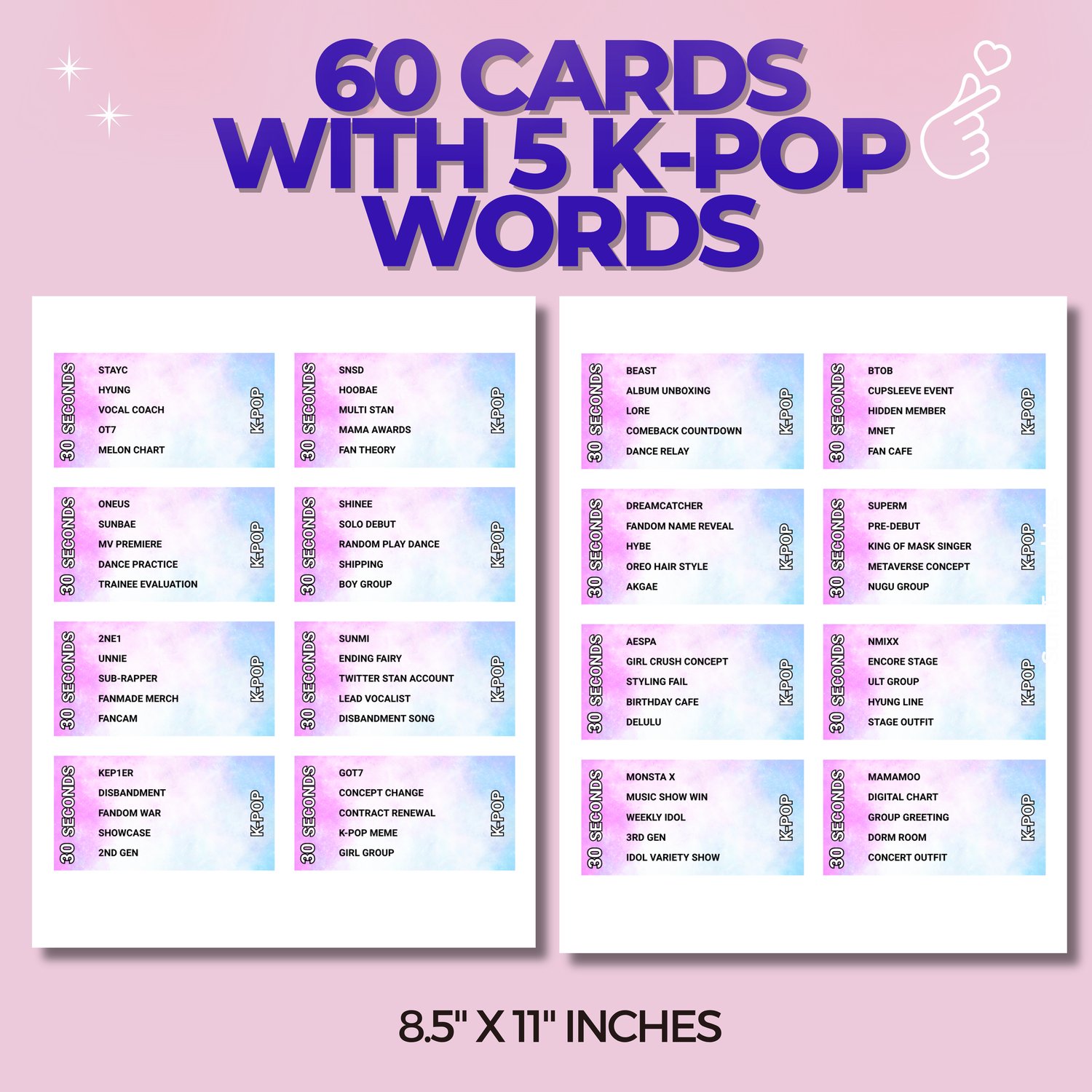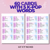✔ 60 printable cards (5 K-pop words per card = 300 total prompts!)