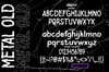 "Old Metal" is a bold, gritty, and textured font inspired by the raw energy and rebellious spirit of the metal genre. Its jagged edges and distressed appearance evoke the rough, industrial feel of worn steel, making it ideal for music branding, band logos, and edgy apparel designs. With a heavy, aggressive presence, this font captures the essence of classic and modern metal, perfect for conveying power, intensity, and attitude. Whether used for album covers, merch designs, or promotional materials, "Old Metal" brings a bold, commanding style that resonates with fans of hard-hitting music and underground culture.