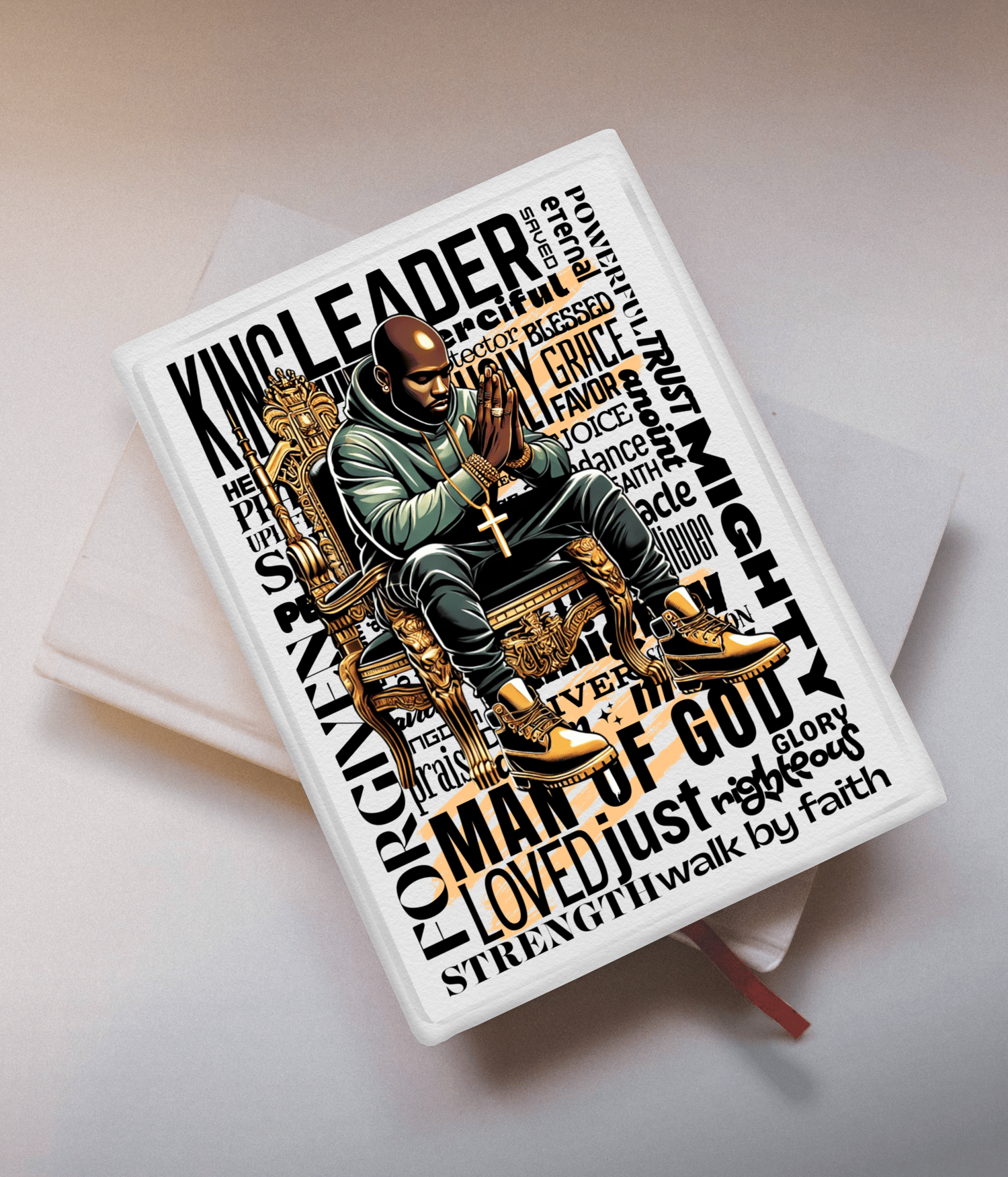 Celebrate faith, strength, and leadership with this powerful and visually striking digital journal cover. Featuring a highly detailed Afro-American man in prayer seated on a royal throne, this 5x7 design is perfect for journaling, devotionals, or gifting to a faith-driven loved one. Bold faith words like “KING,” “FORGIVEN,” and “WALK BY FAITH” create a powerful, layered backdrop that radiates empowerment.