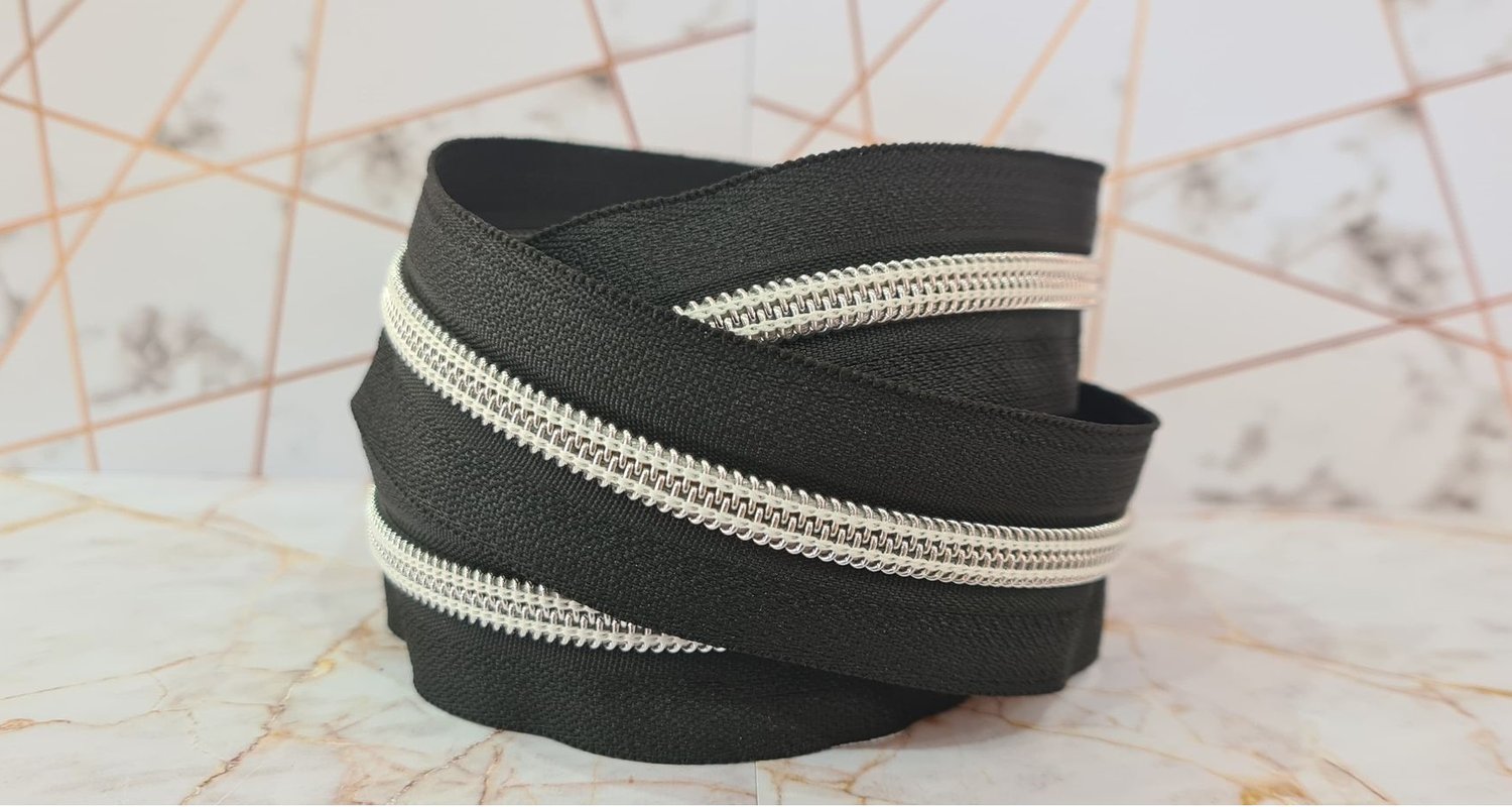 #5 Nylon zipper tape Black zipper tapes with nylon teeth.