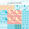 The Summer Seashells Digital Paper Pack is a collection of nine seamless patterns in shades of blue and orange. These summer beach patterns all feature seashells and starfish.