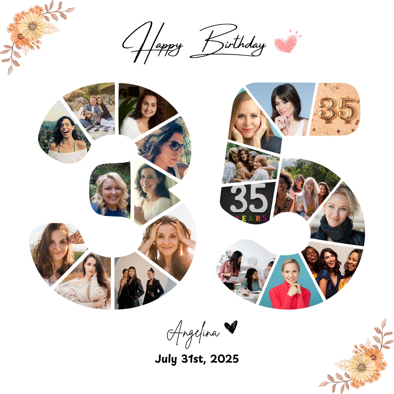 35 Years Birthday Photo Collage Template Happy Birthday Card Editable Canva Design Template