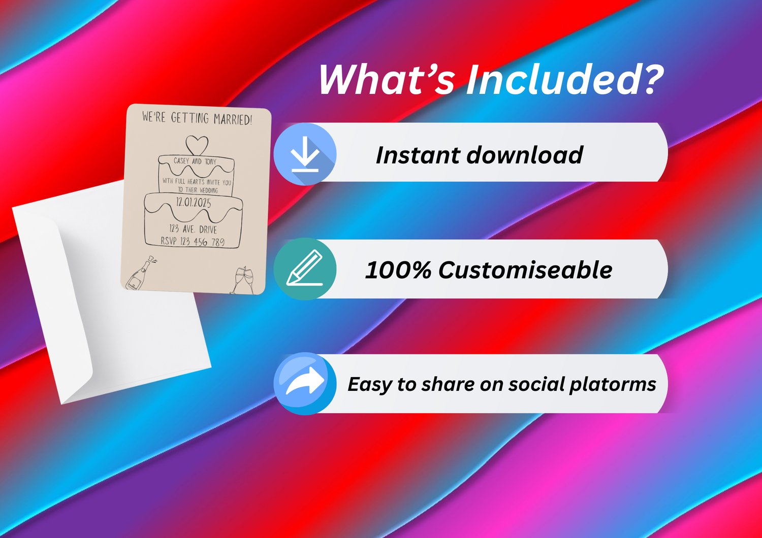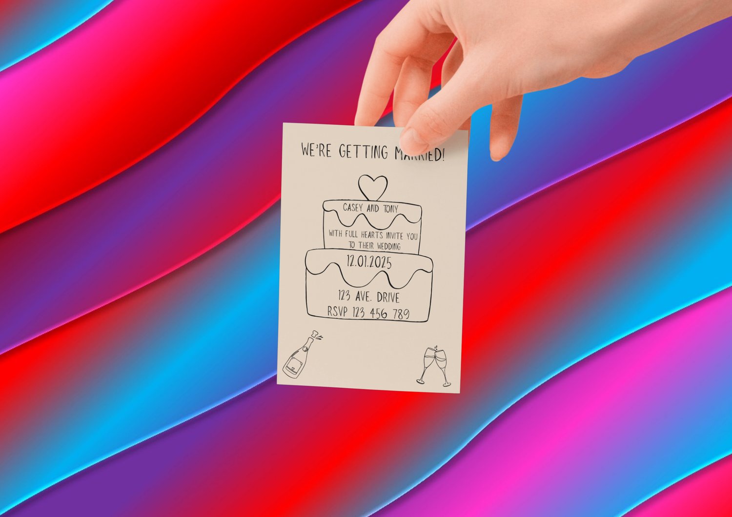 Keep it simple, sweet, and effortlessly stylish with this Minimal Wedding Invitation featuring a charming hand-drawn cake illustration and clean, modern typography. Perfect for couples who love a lighthearted and minimalist aesthetic, this digital invite sets the tone for a joyful celebration with a personal touch.