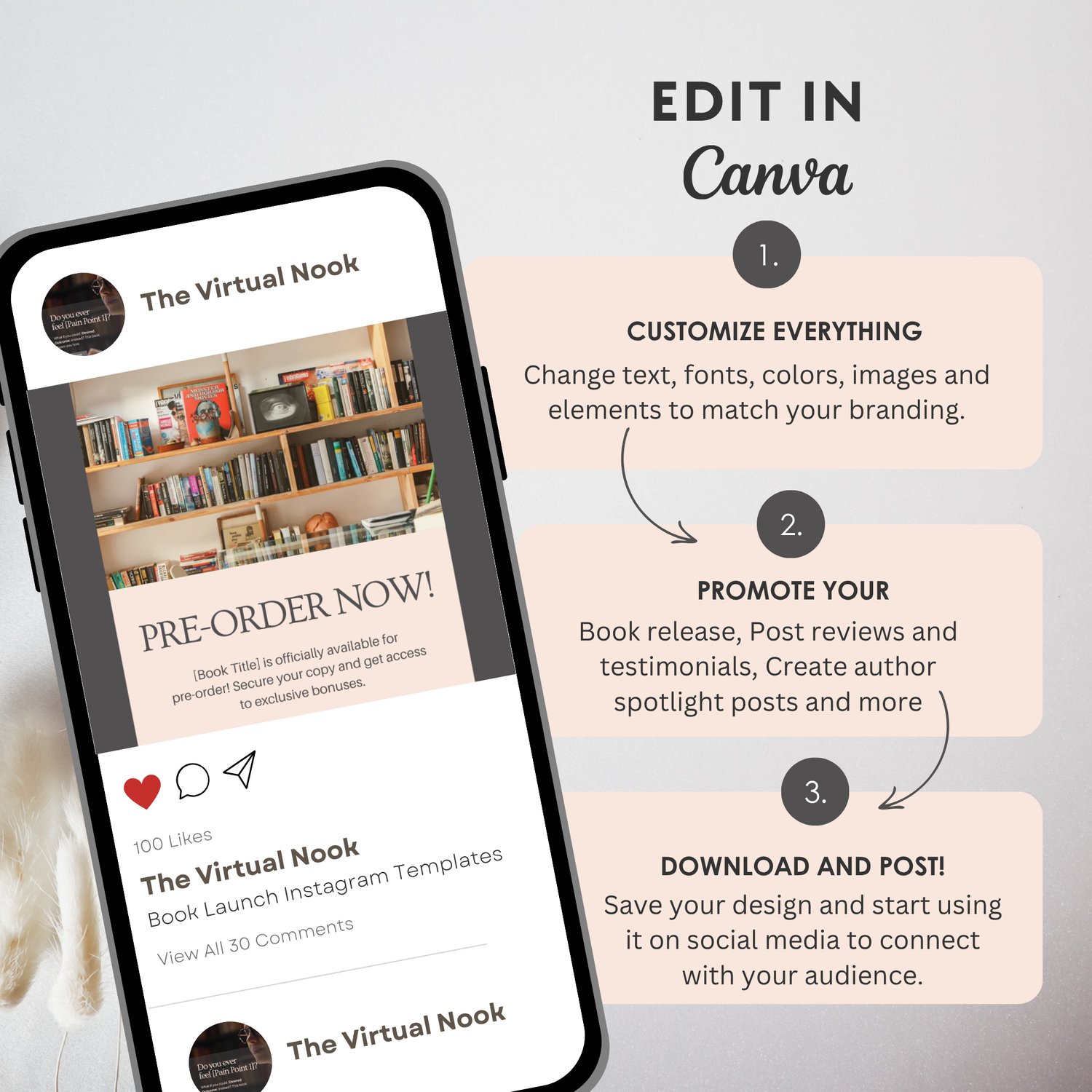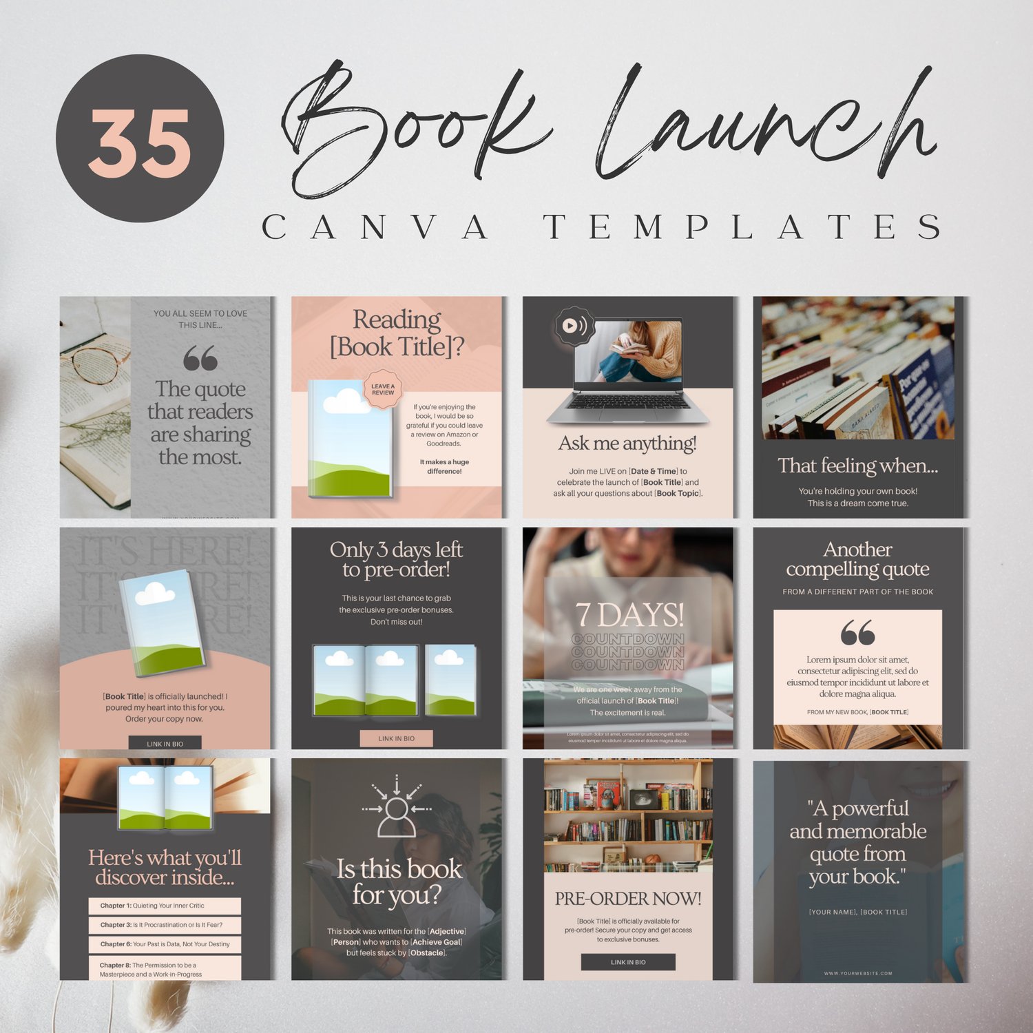 - Professionally designed layouts for book launch announcements, pre-orders, quotes, teasers, author introductions, reviews, and event invites