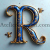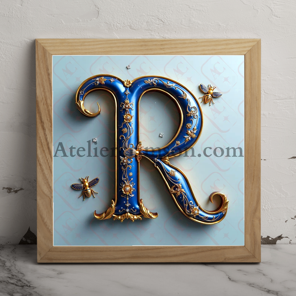 The letter R royal blue bees Download Now this high quality AI-generated image, perfect for adding a touch of tranquility and creativity to any space.