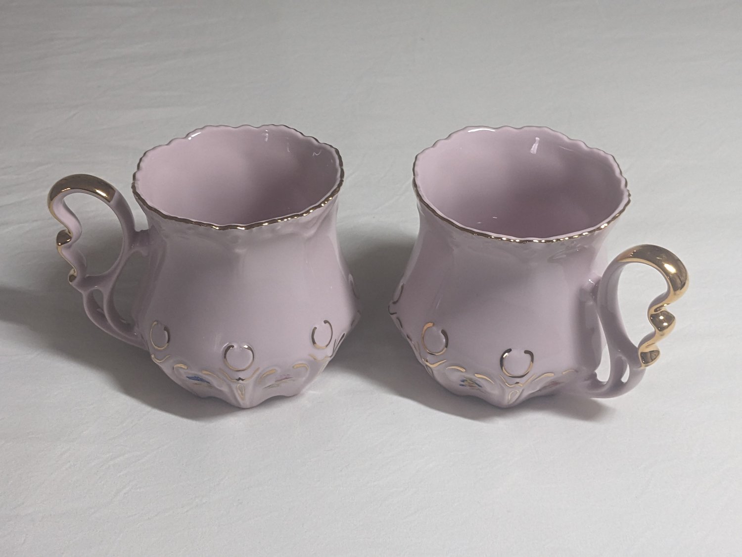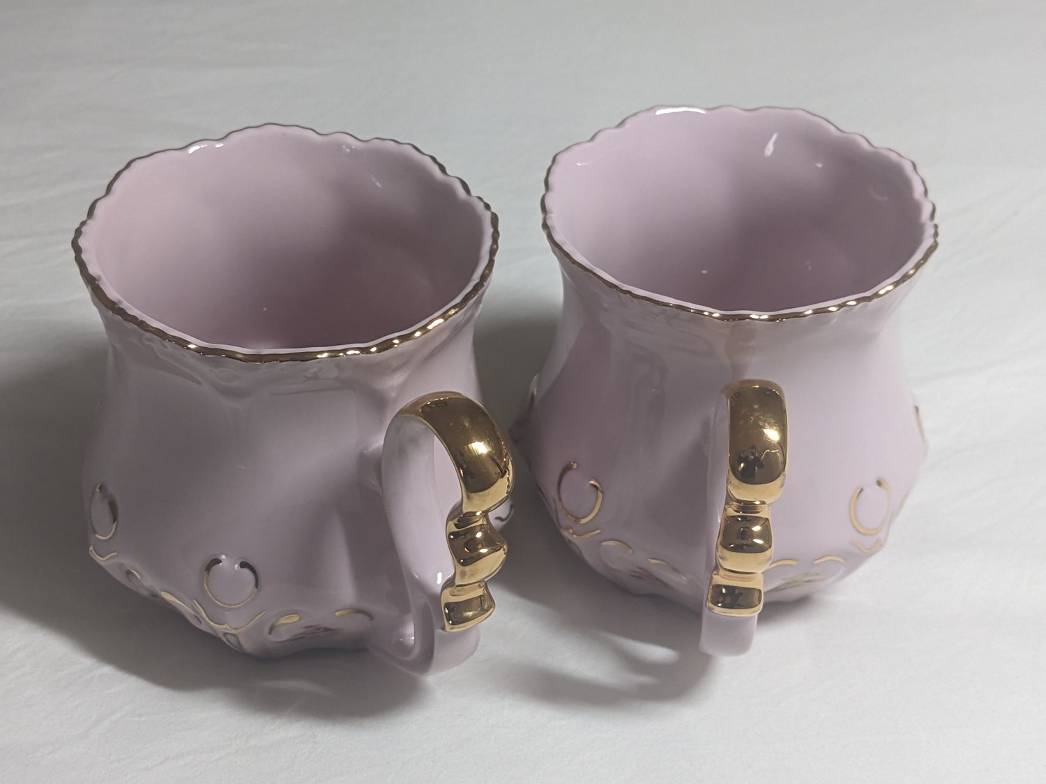 1990s ORIGINAL ROSA PORZELLAN (Pink Porcelain) hand painted mugs, 24kt Gold Trim