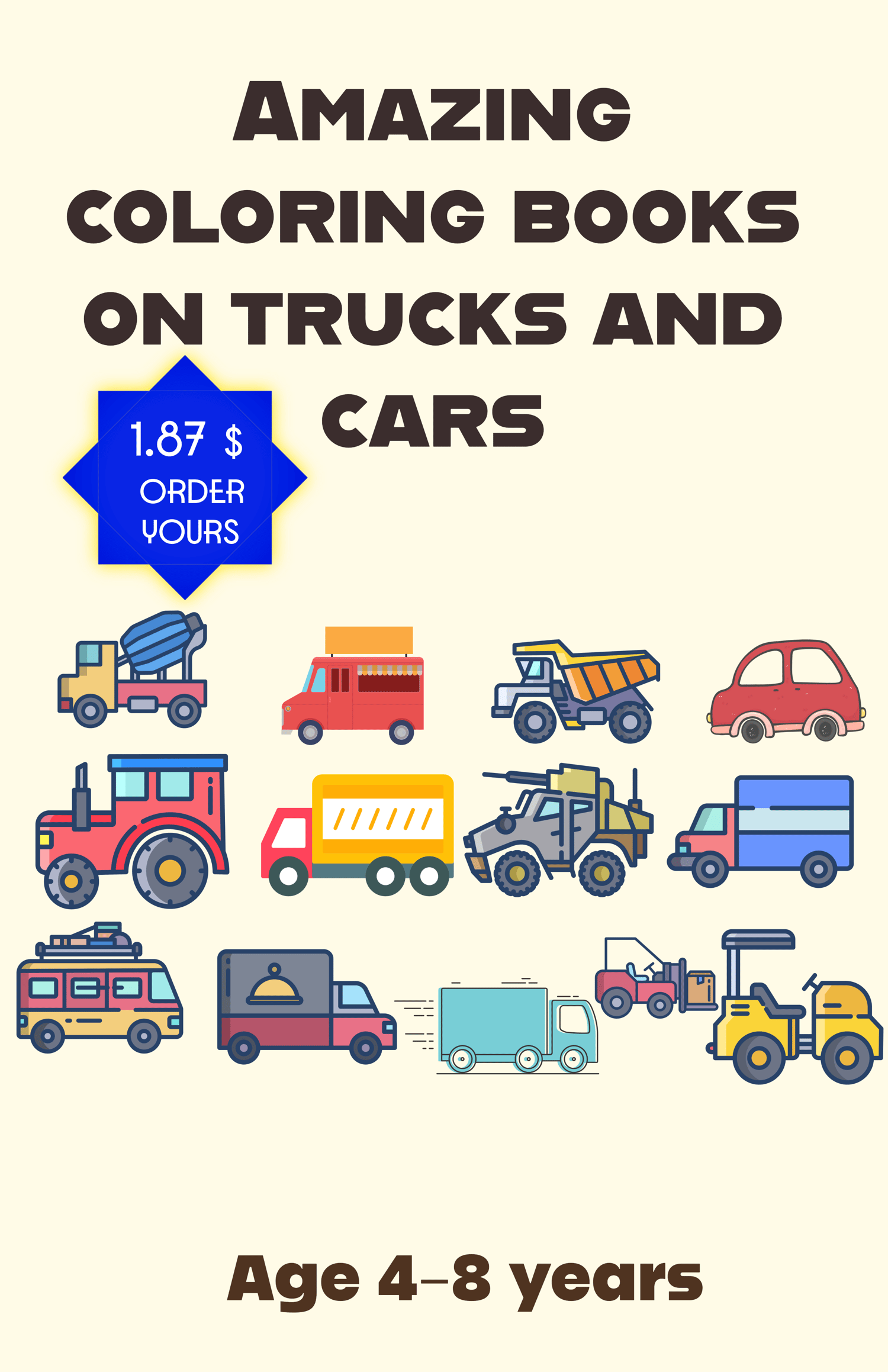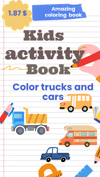 Amazing kids activity book coloring trucks and cars