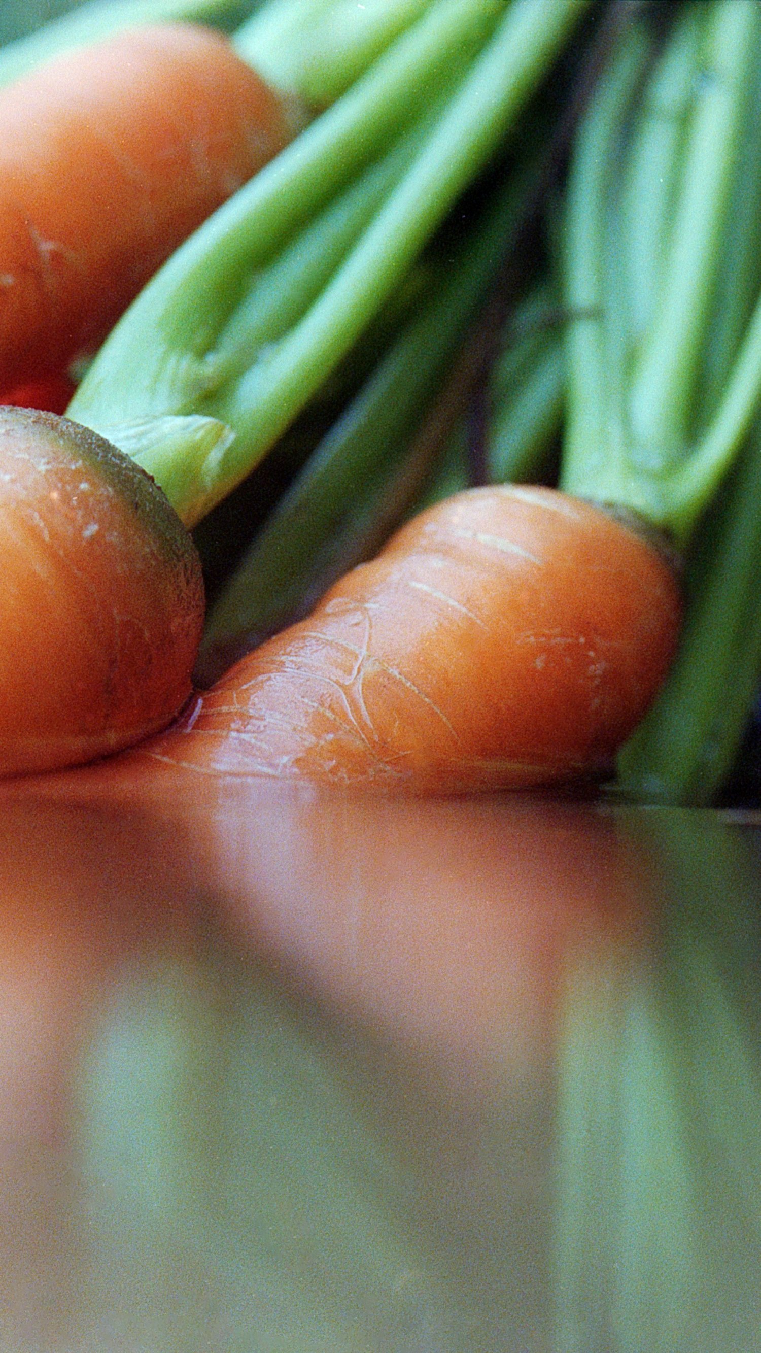- Vibrant Contrast: The brilliant orange of the carrots pops against the cool, translucent blues and greens of the river water.