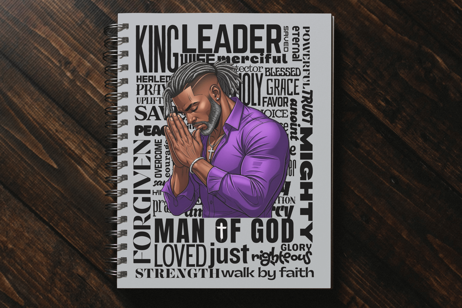 This Man of God Journal Cover design is the perfect way to create faith-based journals, Bible study notebooks, and inspirational planners. Featuring a powerful prayer illustration with uplifting scripture-inspired words in the background, this 5x7 cover is a bold reminder of strength, faith, and God’s grace.