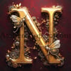 The letter N red velvet and gold steampunk character