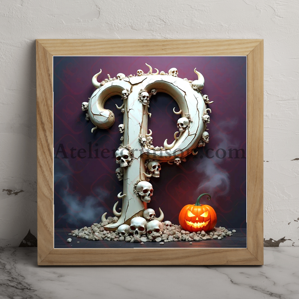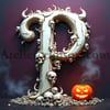 The letter P spooky character skull Halloween Discover our Spooky Skull Alphabet! Each character is a 3D masterpiece of bone and shadow. Perfect for Halloween designs, gothic projects, or unique wall art. 💀✨ Click to download this high-resolution character and elevate your creations with haunting elegance!