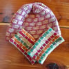 Original knit using Campfiber Yarn, non- superwash DK, Apple Orchard for MC and Apple Skin for CC. Original is size “C”.