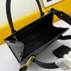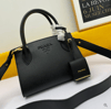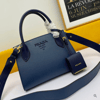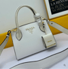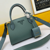 Un'unica tonalità colora interamente la borsa Prada Monochrome in similpelle enfatizzata dal logo lettering in metallo.