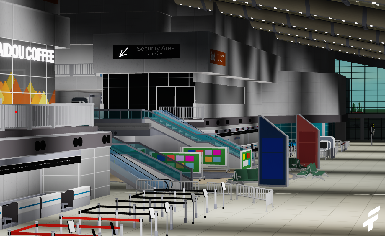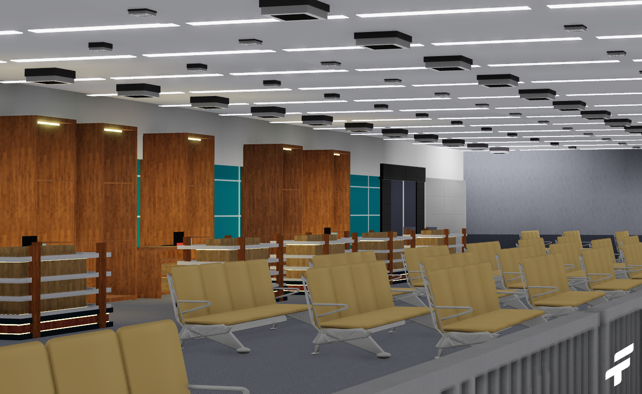 -Basic interior with check-in, security, gate areas, and airport stores.