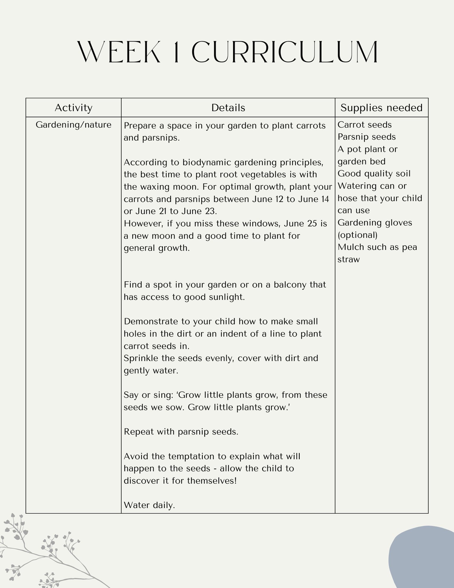 Through meaningful, sensory-rich experiences, this curriculum nurtures wonder, imagination and a deep connection to the rhythms of nature.