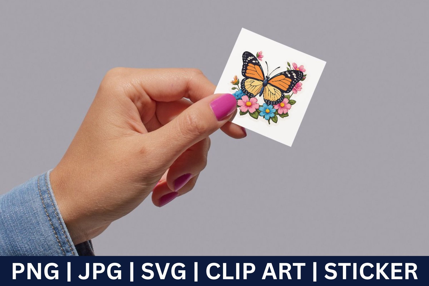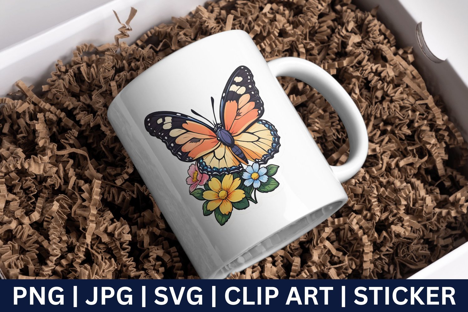 Butterfly on Flowers Design Clip Art Sticker Sublimation