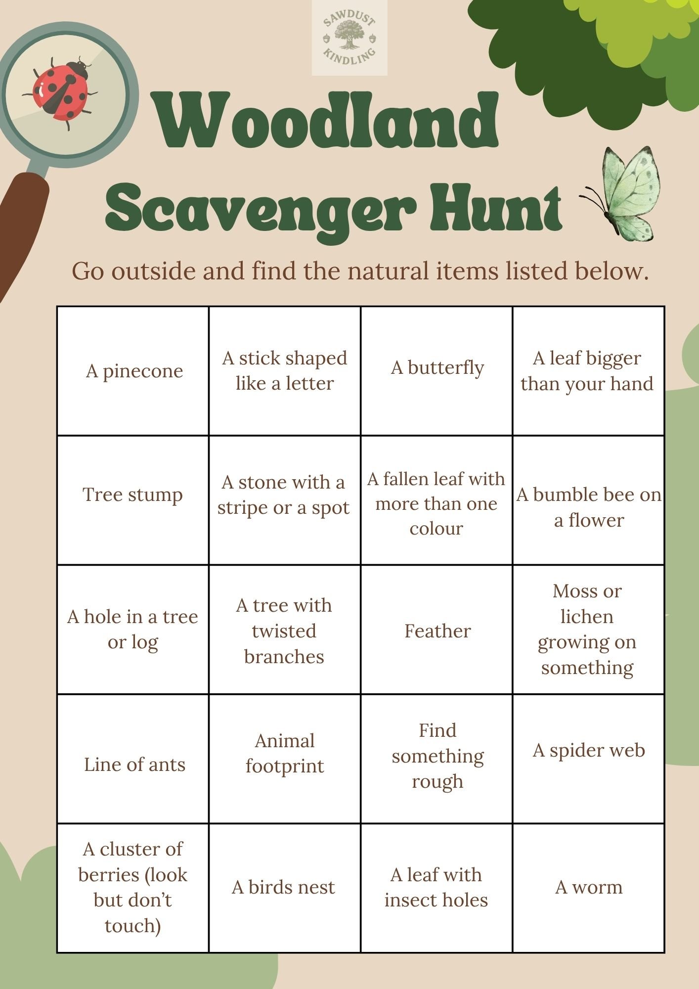 Turn your next woodland walk into a magical adventure with our Woodland Scavenger Hunt! Whether you're exploring a local forest, park, or your own back garden, this fun and engaging activity helps children connect with nature while building observation skills.