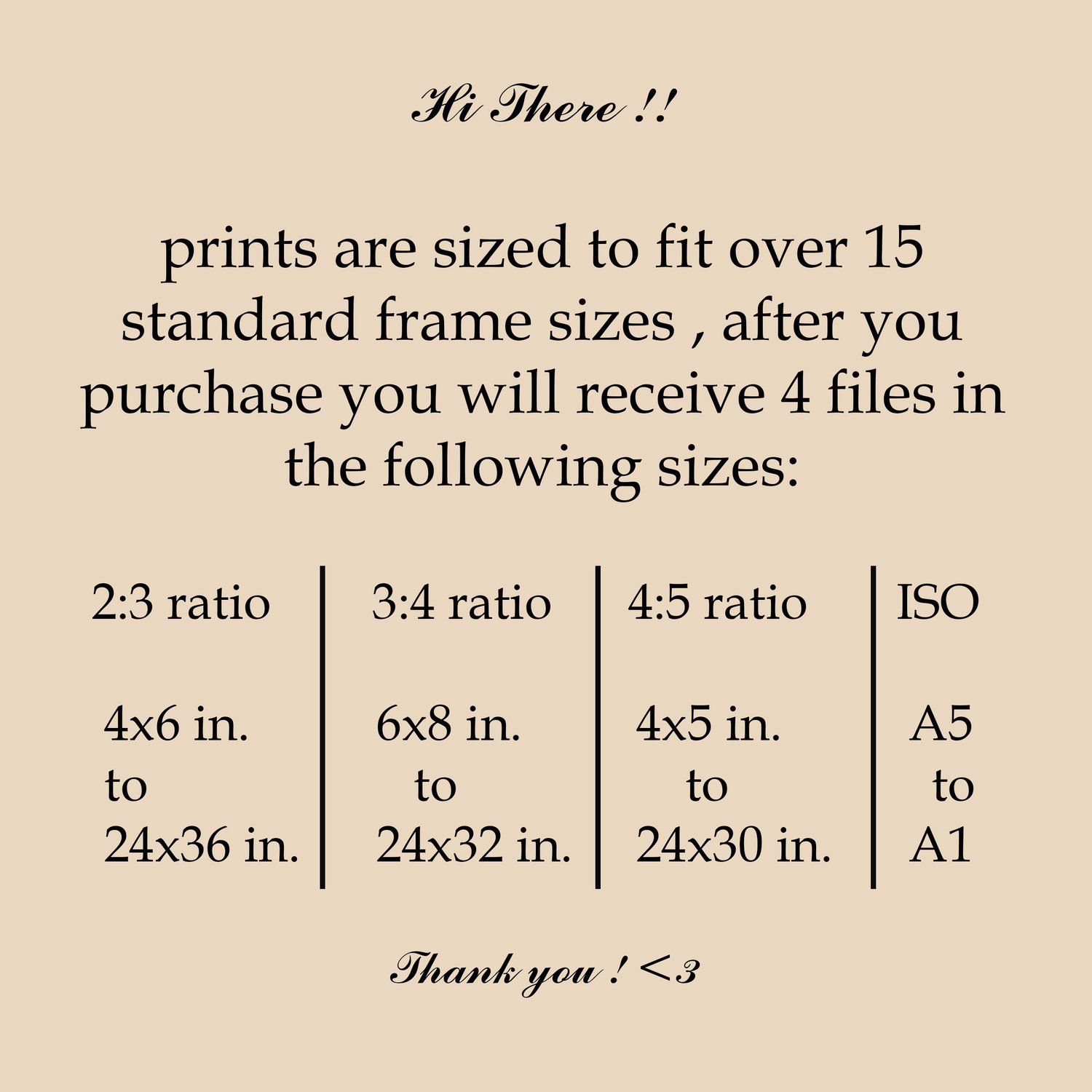 - If you need another size (inches/cm) or aspect ratio, add a note when you purchase the item and I will send the new print right to your email.