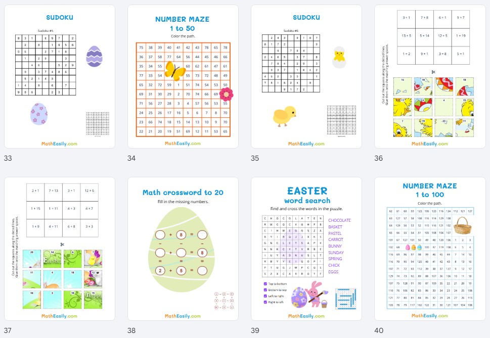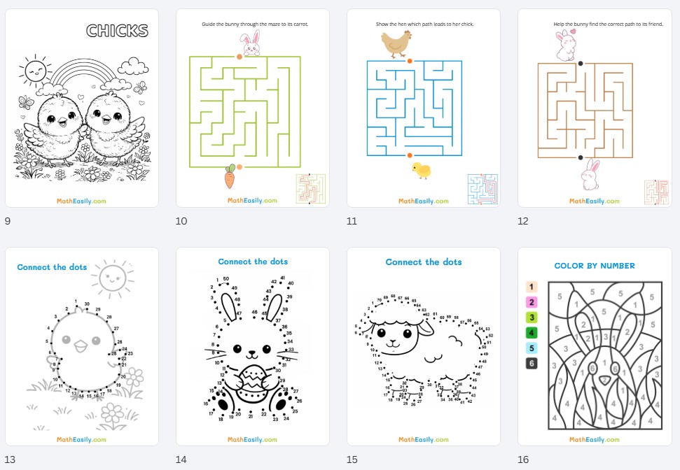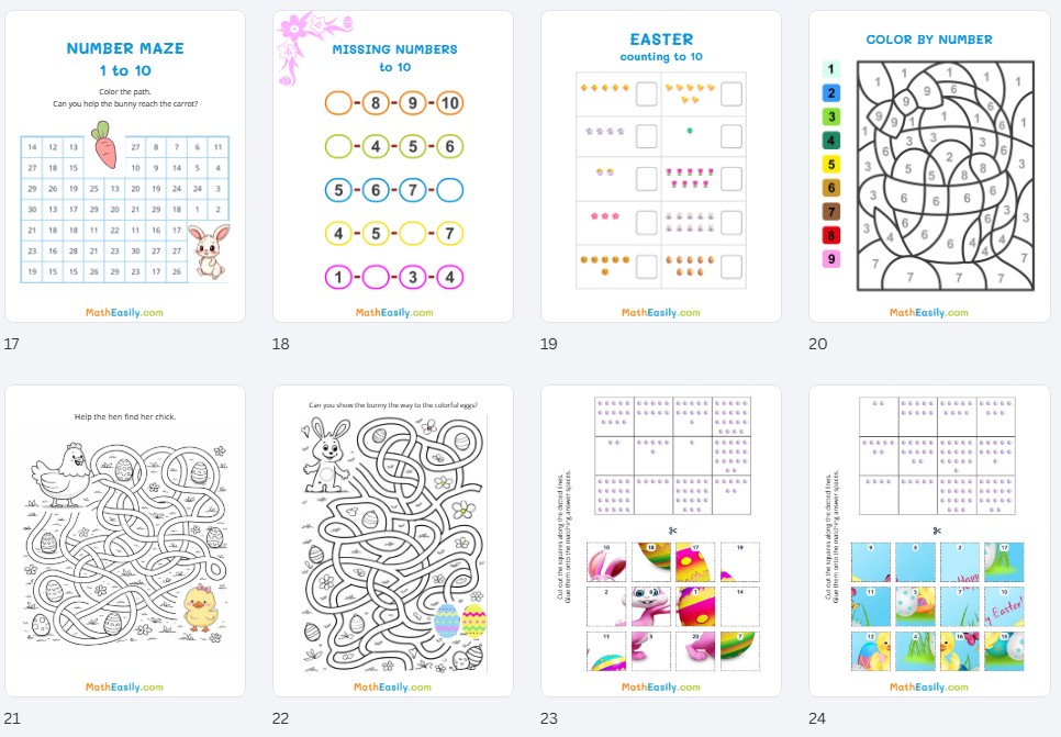 Bring Easter learning to life with this printable 50-page Easter Activity Book (Look inside) - a cheerful mix of coloring, puzzles, and early math practice.
