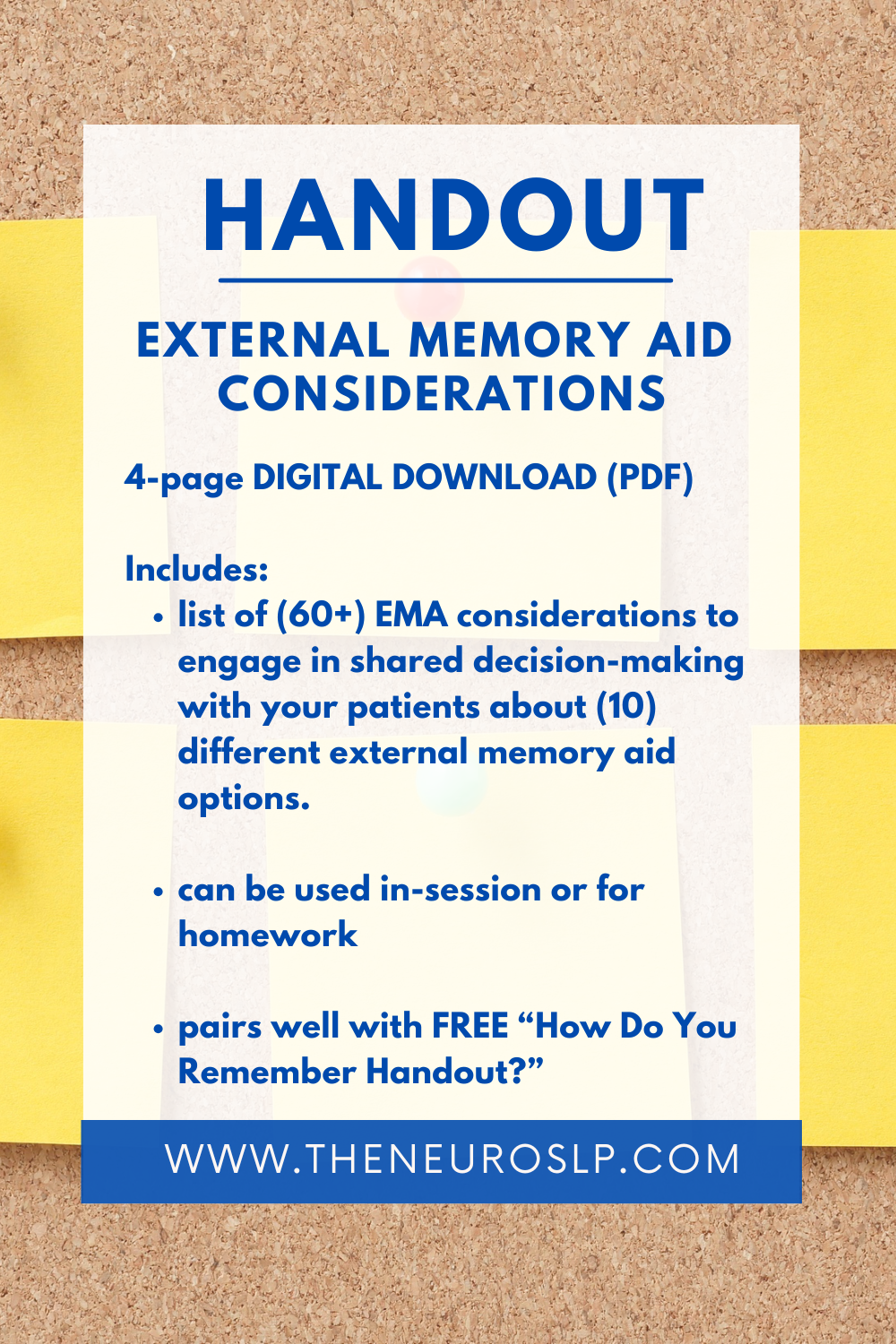 Use this List of (60+) EMA considerations to engage in shared decision-making with your patients about (10) different external memory aid options.