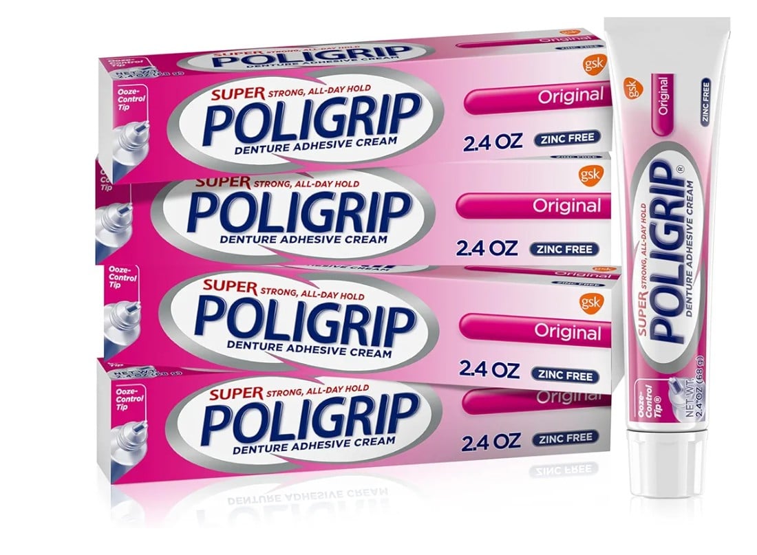 Four 2.4 oz tubes of Super Poligrip Original Denture Adhesive Cream for Dentures