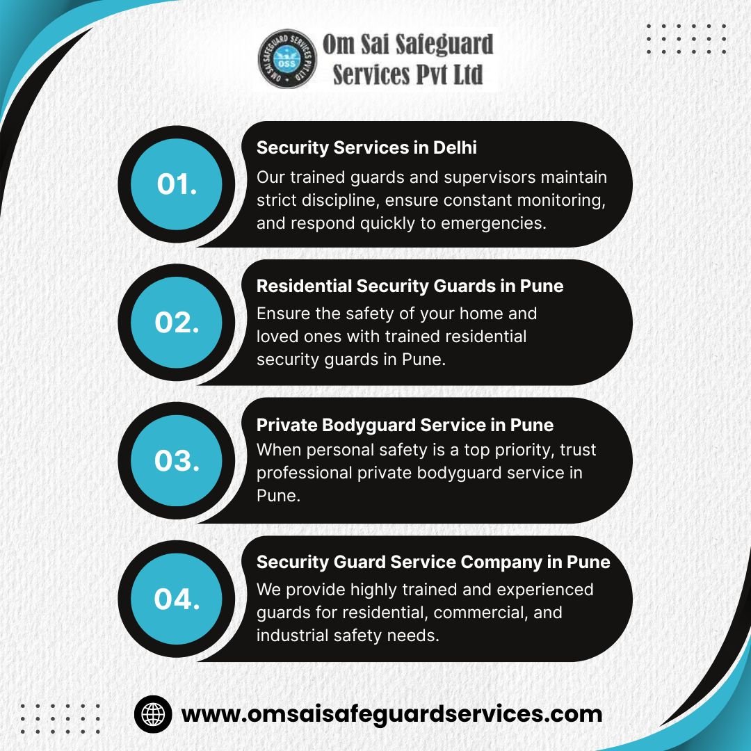 Ensure the safety of your home and loved ones with trained residential security guards in Pune. Our expert team is dedicated to monitoring, preventing risks, and ensuring peace of mind in apartments, societies, and gated communities. Choose Om Sai Safeguard Services Pvt Ltd for reliable, professional, and affordable residential security solutions customized for your safety needs.