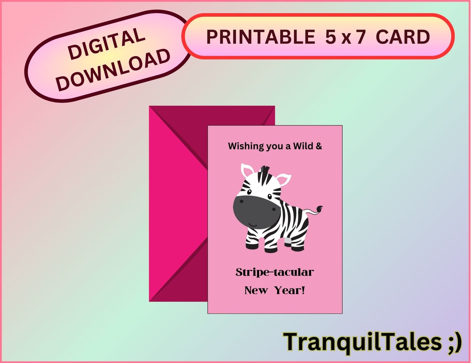 Wishing you a Wild & Stripe-tacular New Year! Card - 5" x 7" inches - New Year card - PDF File