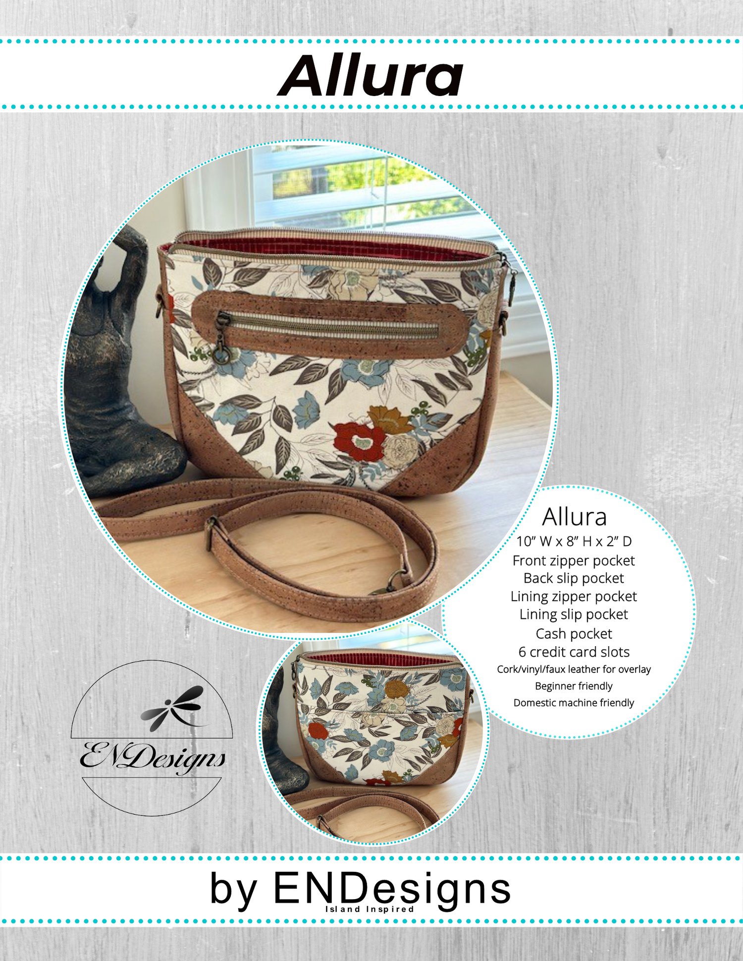 Please note: The Allura is a downloadable PDF sewing pattern. It is not a finished bag, nor a paper sewing pattern. Your Allura PDF file will be available immediately after checkout. You will also receive a receipt with a download link to the sewing pattern; please download the file or files and save them to your computer. There can be multiple files for US letter size, A4 size, Projector & Copy Shop as well as SVG zipped files if available. Download all the files, open and discard the ones you won't need.