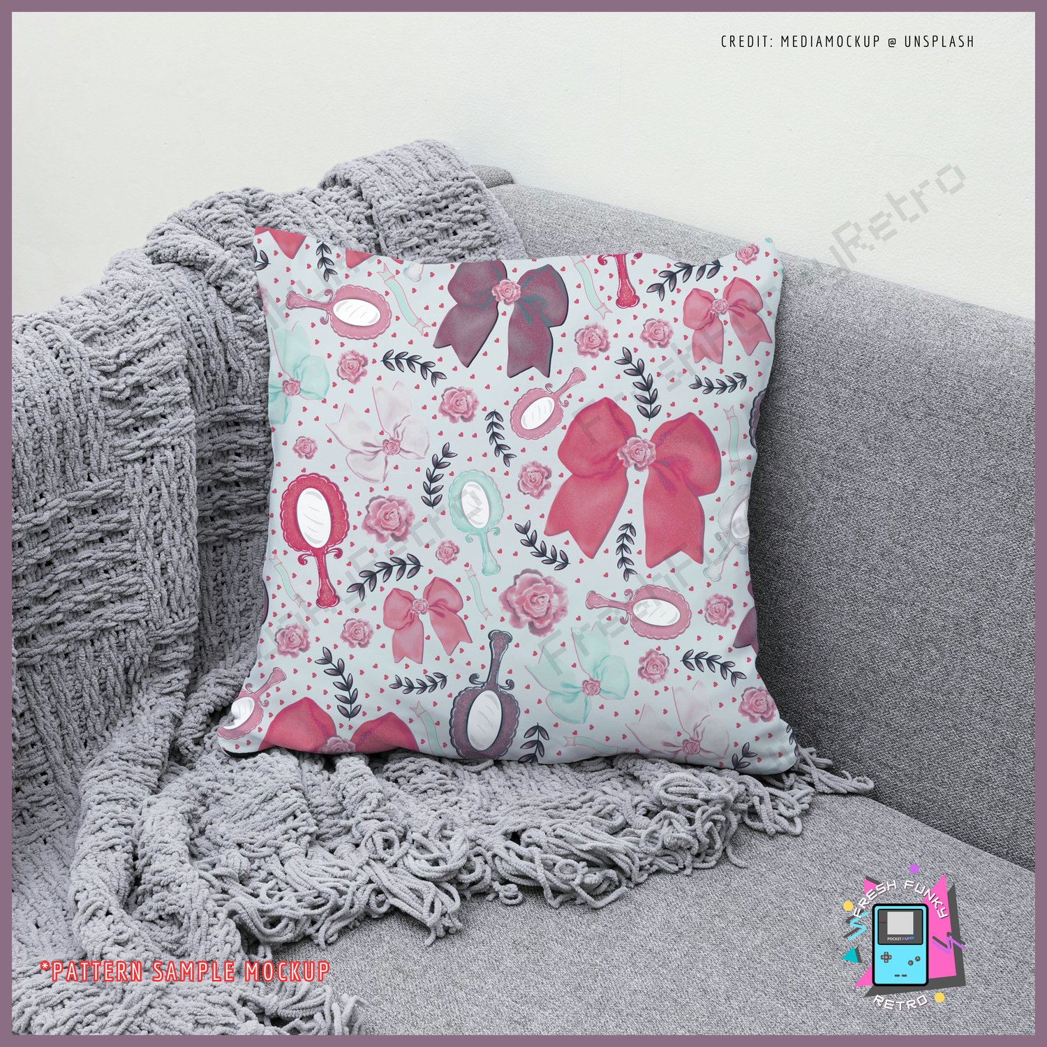 This pattern features large bows, hand mirrors, and delicate roses. Perfect for anyone looking for something cute and feminine.