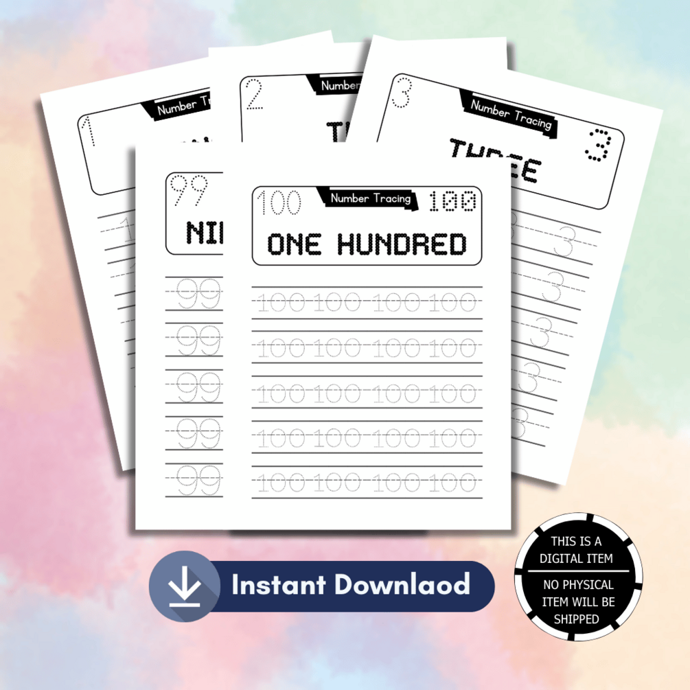 Your number tracing book is ready! Perfect for kids learning to write numbers 1-100.