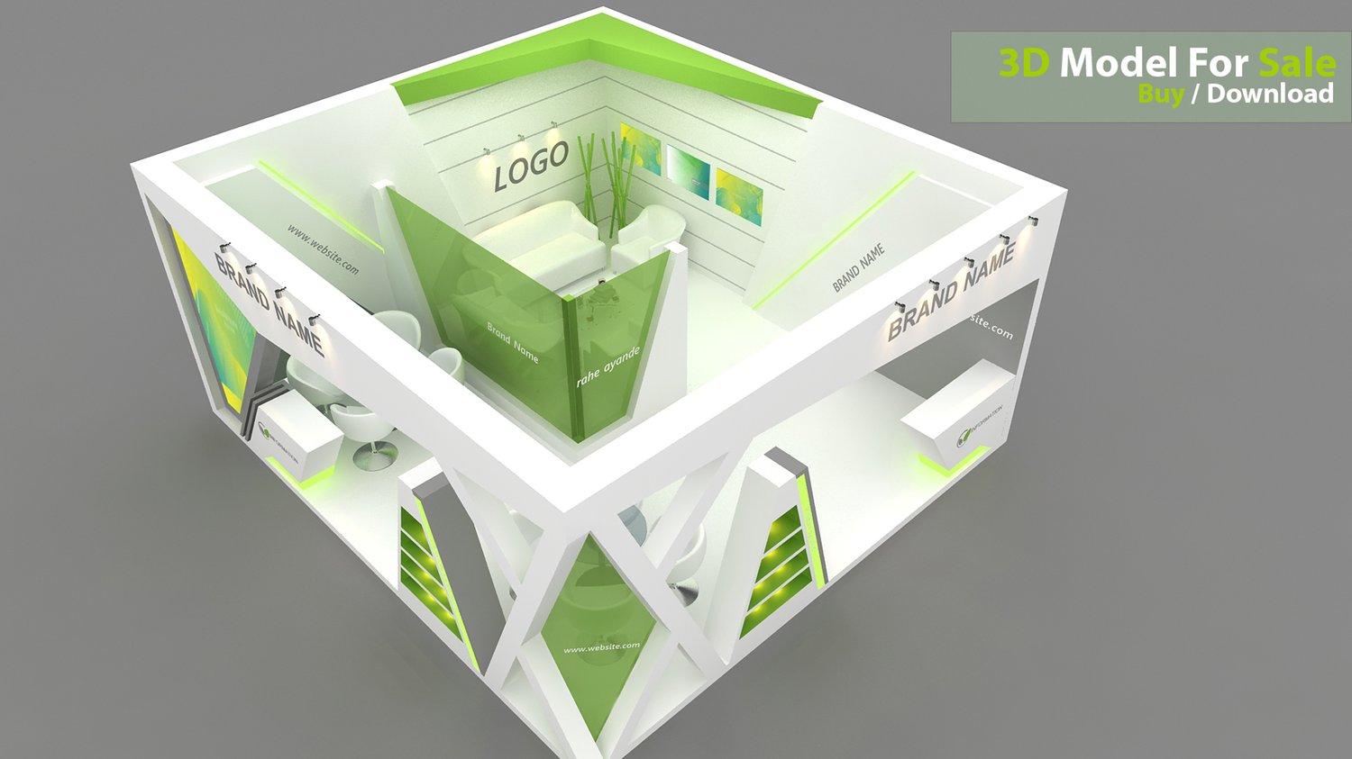 This professional 3D booth model is designed for exhibitions, trade shows, expos, fairs, and event displays.