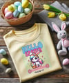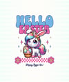 🌈🐰 Say "Hello Easter" with this trendy unicorn! With colorful hair, a basket of eggs, and a retro checkered background, this design is playful and vibrant. Perfect for Easter and spring collections!