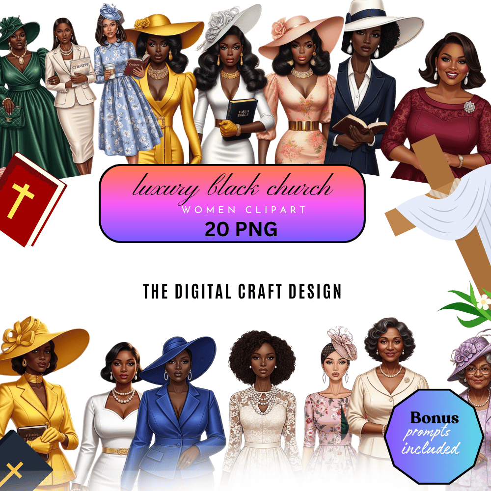 Luxury Black Church Women Clipart Bundle