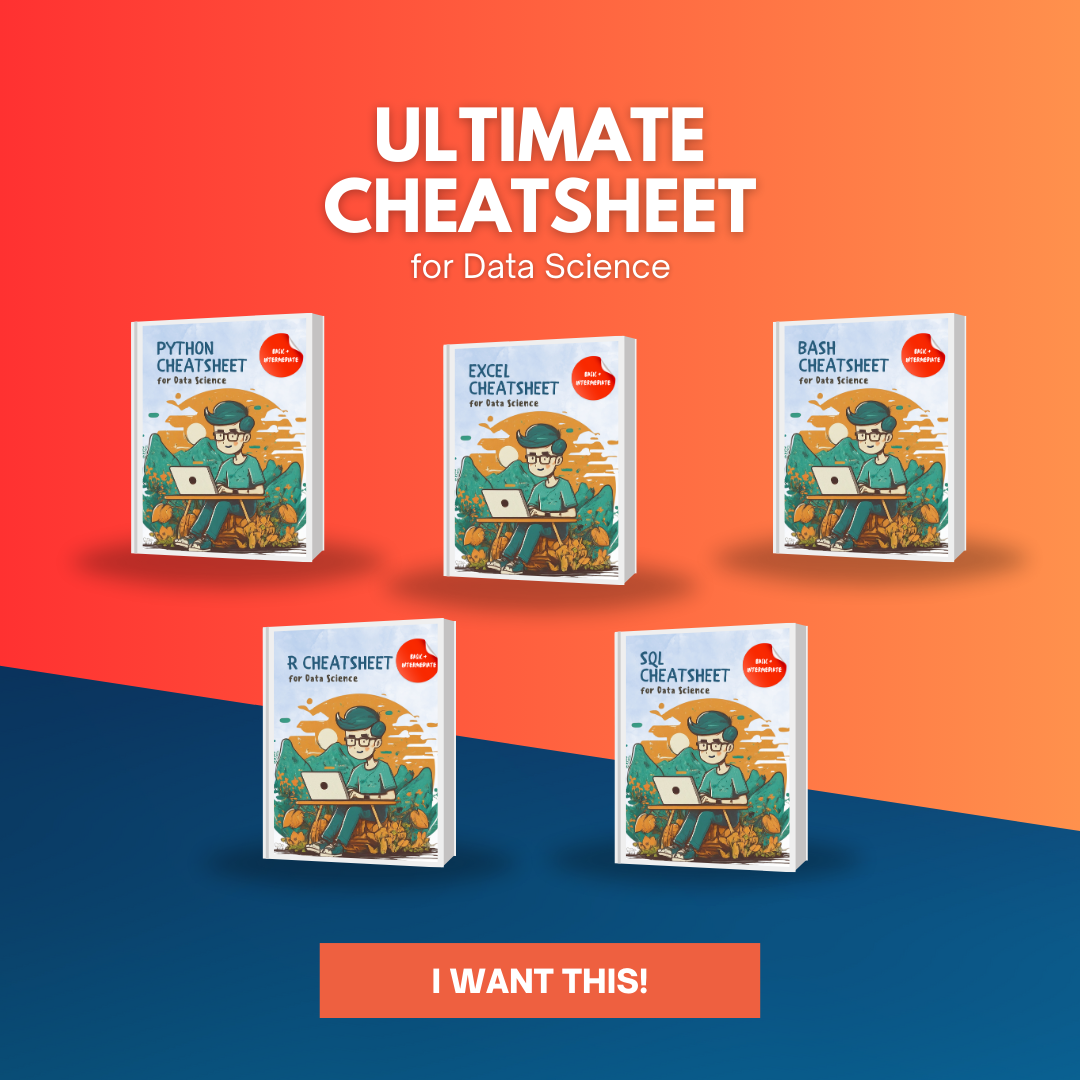 Unlock data mastery with our ultimate cheatsheet book for Python, R, SQL, Bash, and Excel. Perfect for all skill levels, this guide offers concise, practical tips to streamline your workflow and boost productivity. Transform your data science skills with easy-to-follow cheatsheets, putting essential information right at your fingertips.