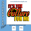 Immerse yourself in the rich cultural heritage with this captivating hand-drawn PNG image. Featuring the powerful statement, "It's the culture for me," this artwork is perfect for Juneteenth, Black History Month, or everyday use. Celebrate and honor the diverse traditions, music, art, and history that make up our vibrant Black culture.