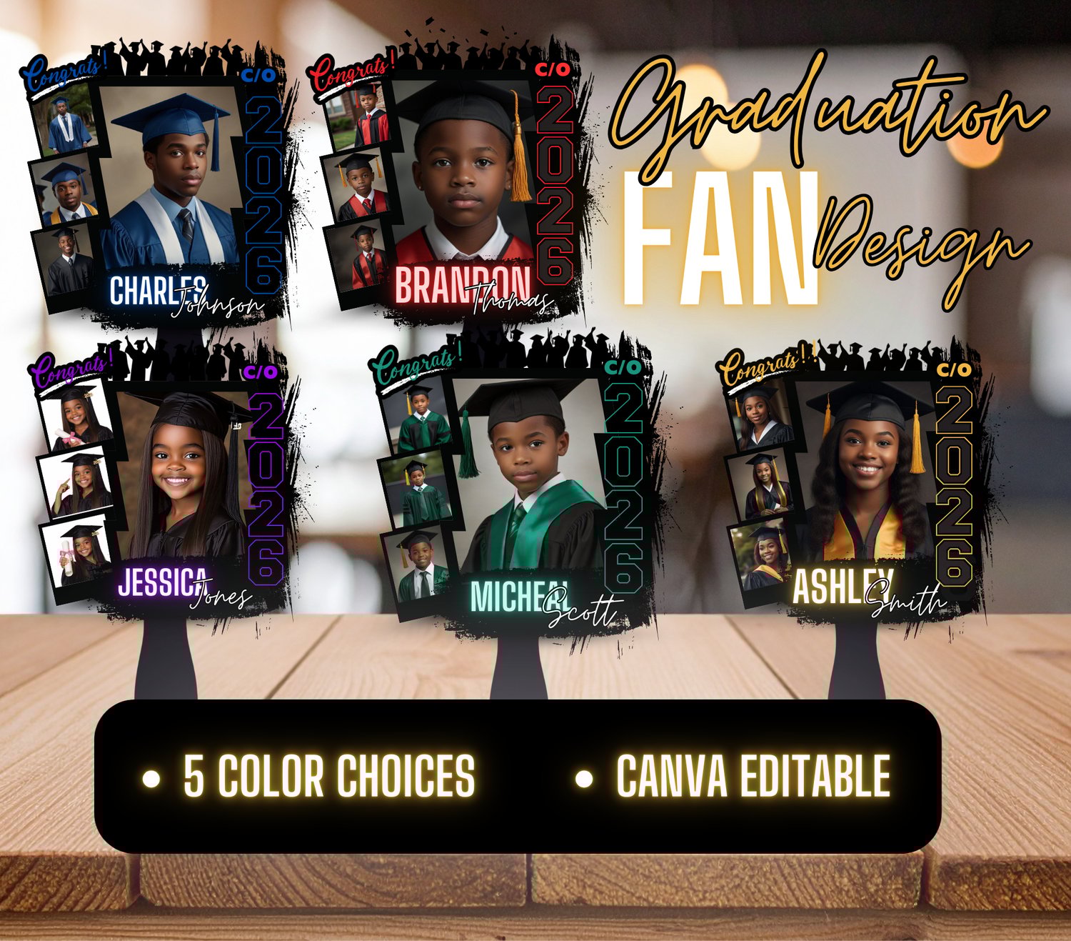 Graduation Fan Template Canva Editable | Class of 2026 Senior Fan Design | Photo Graduation Fan | Printable Graduation Fan | Graduation Party Favor